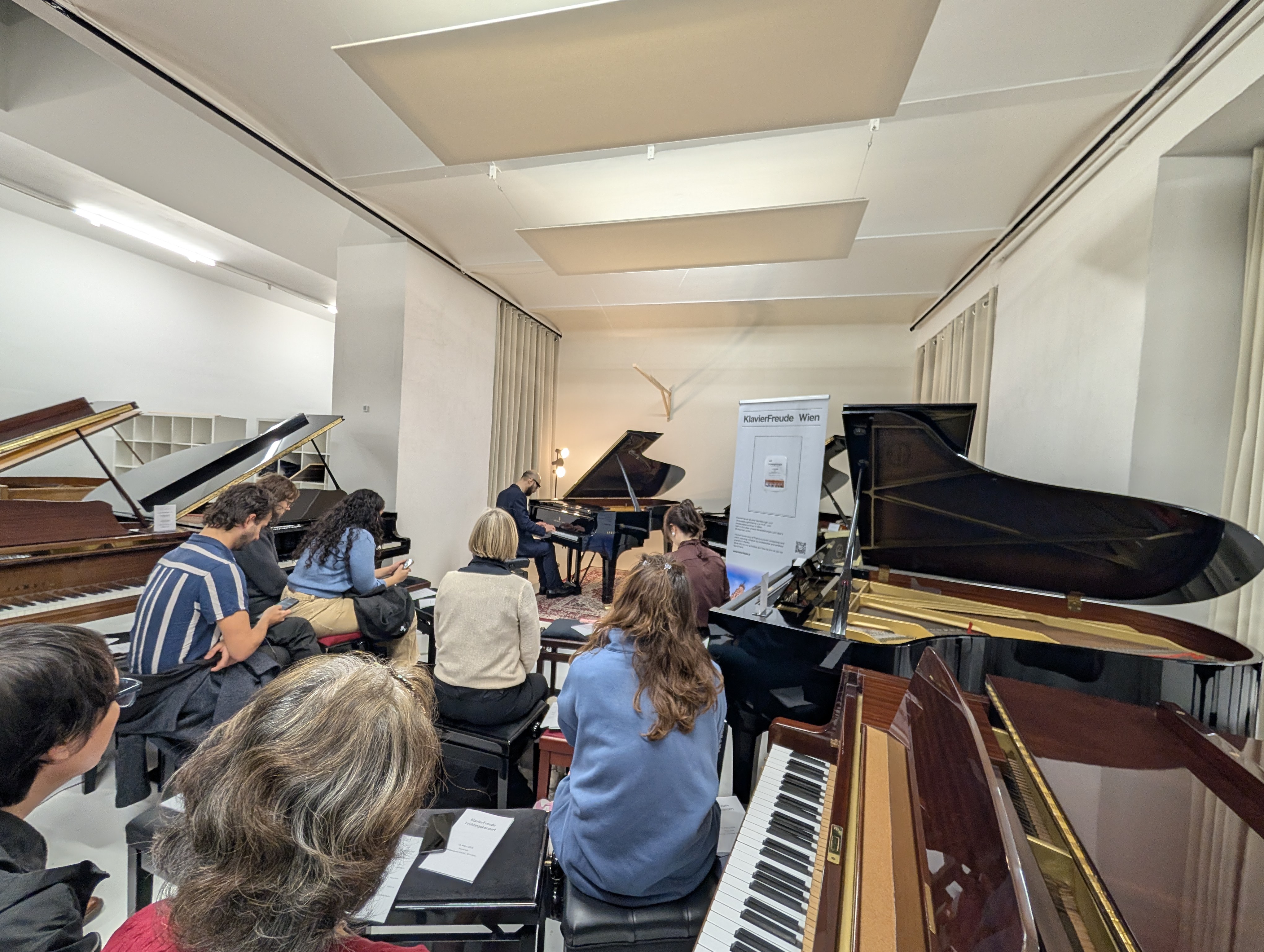 This time we have chosen a special location for the spring concert: surrounded by pianos in the showroom of Klavierloft, Neubaugasse 64/3/6, 1070 Wien. There will be piano benches for seating.There is a attendance limit please register (for free) on our Meetup - Event Page, so we can get idea of how many visitors there will be!